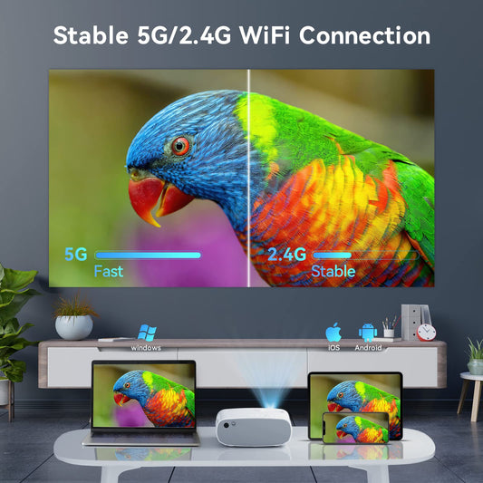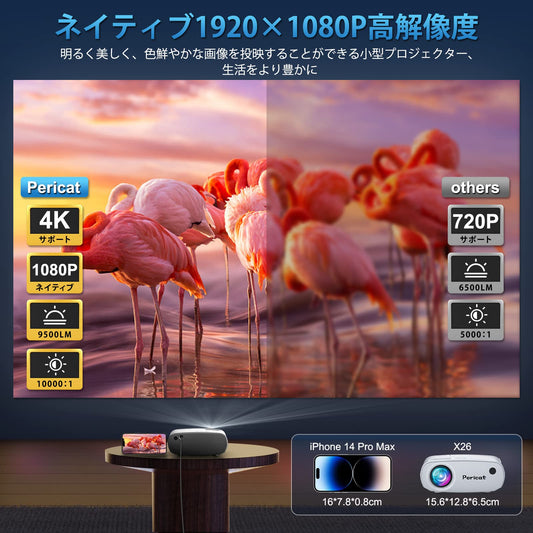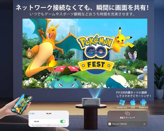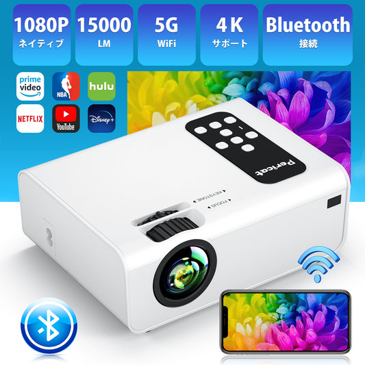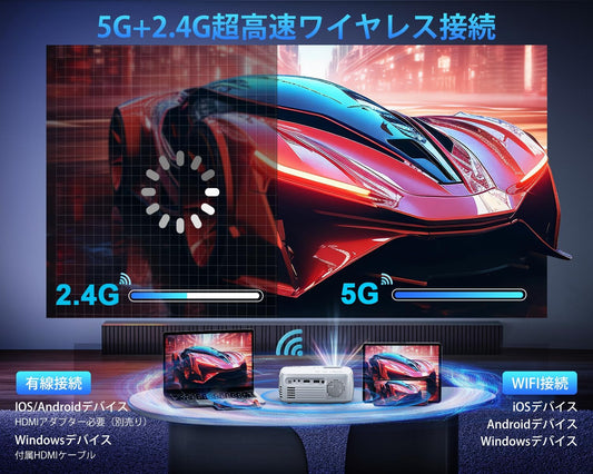 プロジェクター【家庭&ビジネス両用・WiFiなしでも瞬間ミラーリング】 ホームプロジェクター 小型 20000ルーメン 高輝度 リアル1080P 5GWiFi 4K対応 HIFIスピーカー内蔵 Bluetooth ホームシアター 天井投影/台形補正/ズーム機能 パソコン/スマホ/タブレット/TV Stick/Switch/PS4/PS5ゲーム機接続可 日本語説明書 収納バッグ付き